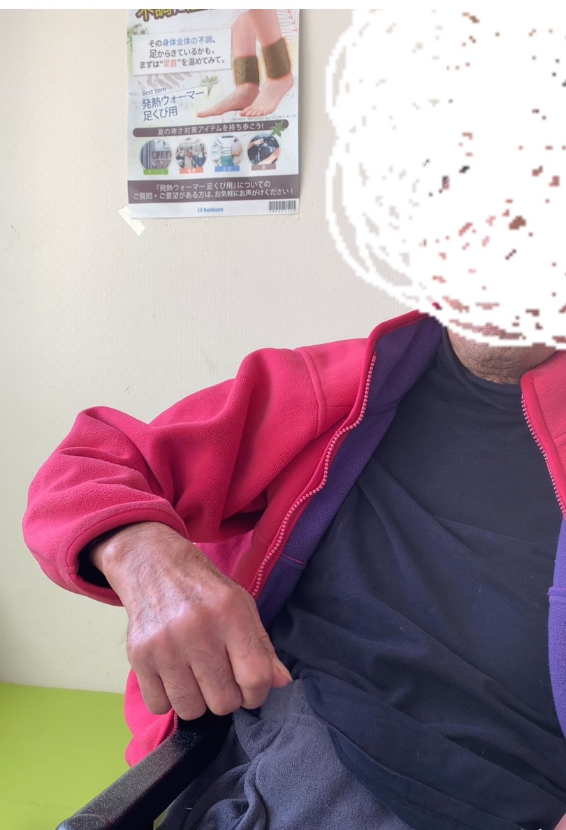 10/24初来院時。4月に脳梗塞、8月まで病院でリハビリされていました。右上肢のマヒについて改善したいと針施術をご希望で来院された時の写真です。右手を自力で上げれるのは最大でこの高さでした。 11/17、4回目の針施術後の様子です。右手が高く上がって... -